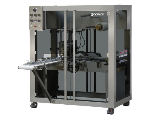本機適用于各行業(yè)中的單件盒式物品的薄膜自動包裝(帶金拉線)。本機整體機架采用碳鋼噴塑、落地多開安全門結構,采用平推式推盒結構,更換模具簡單,調節(jié)距離多處采用手搖式調節(jié)尺寸,大大節(jié)省換模具時間,固定膜處采用氣漲軸輥固定,使換膜更簡單、快速。